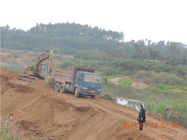 为进一步维护我县河道良好生态秩序,保证河道行洪安全,我局不断强化周末及夜间执法巡查力度,于2019年1月12日(周六)下午和1月13日(周日)凌晨在迳头镇车角桥河段查处了两起涉嫌违法采(运)砂违法行为,依法暂扣拖拉机一台,挖掘机一台,自卸车两台。目前案件正在进一步调查当中。