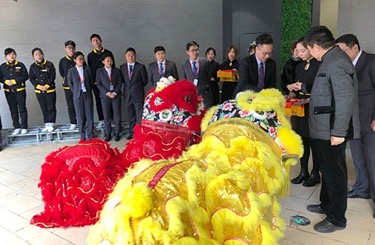 开业仪式以代表中国传统文化的“舞狮”开场,鸣锣喝道,热闹非凡。