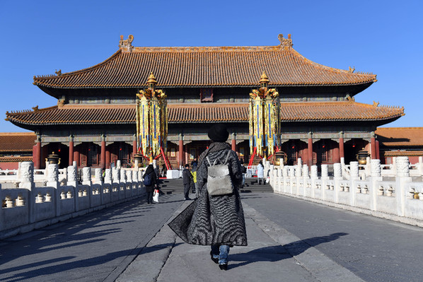 1月21日,故宫博物院在乾清宫前丹陛上下树立起“天灯”和“万寿灯”各一对,作为“贺岁迎祥——紫禁城里过大年”展览的实景体验部分正式向观众开放。