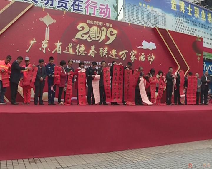 19日上午,2019年广东省道德春联进万家活动在人民公园举行,30多位书法家现场挥毫泼墨,向现场群众赠春联、送祝福。