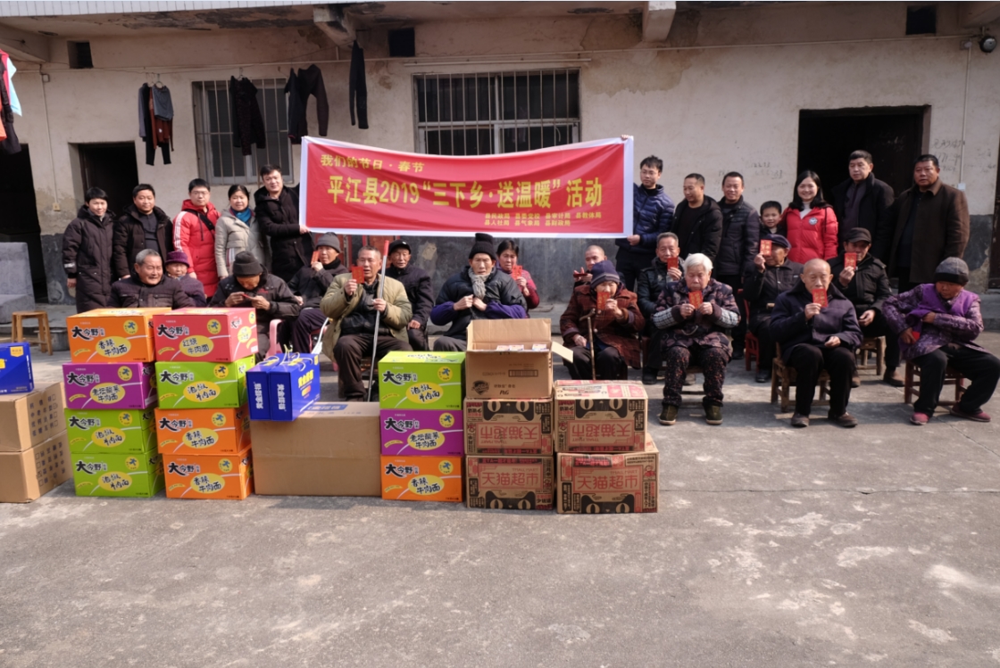 1月21日下午,县国资局副局长、机关党委副书记易丽带领该局党员干部参加了平江县2019“三下乡·送温暖”活动,到南江镇、板江乡两个乡镇敬老院看望慰问孤寡老人,并为老人们送去了精心准备的日常生活用品、方便面、营养品等。