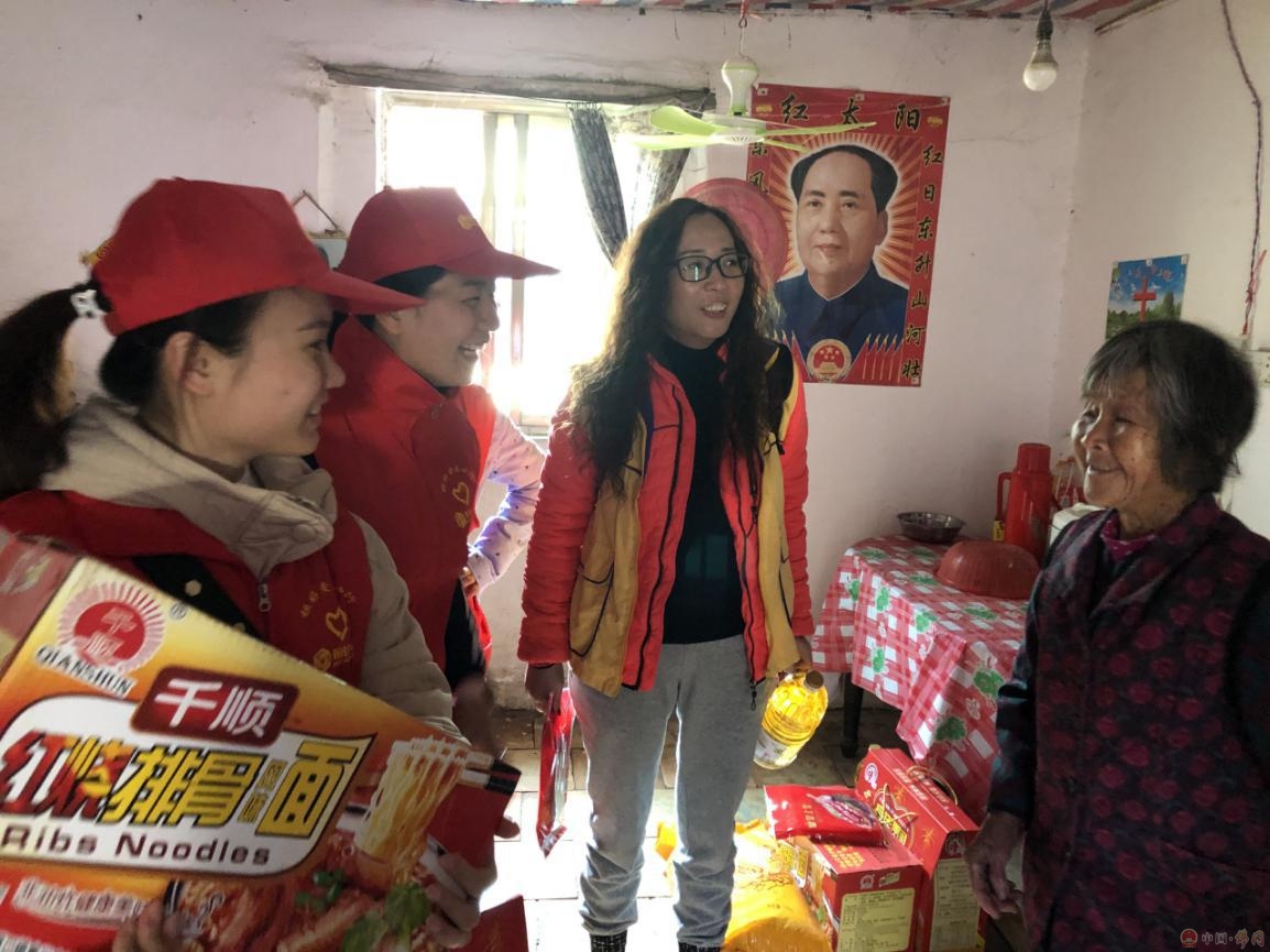 在派发助学金后,幸福服务队在我们扶贫工作队和村委干部的带领下,分4组走访社坪村22户建档立卡五保贫困户,为他们送去新春慰问品。在入户派发慰问品时,其中一位长者情不自禁地落泪了。因为他是一位孤寡老人,平常的生活都是独来独往。现在逢年过节都会有扶贫工作队、爱心人士来探望,与他聊聊天,哪怕只是短短的10分钟,他都感受到那种关怀与温暖。一起参与服务的爱心人士再旁也是默默掉泪,原来再普通不过的陪伴可以让受助者这么的窝心。