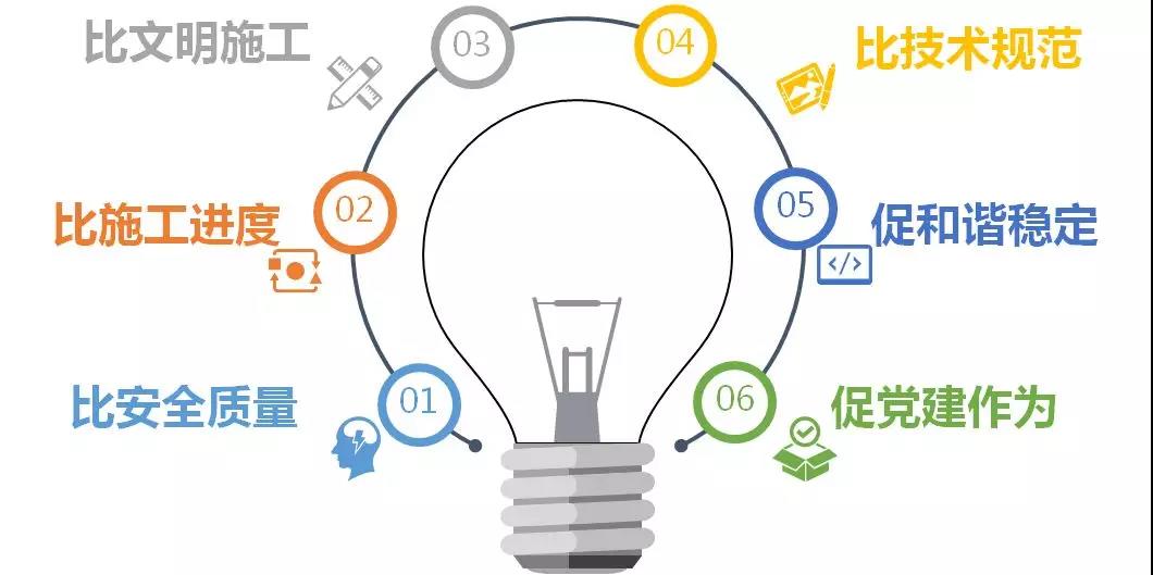 在内容上,细化了“八比”模式:比形象进度,比投资完成,比安全质量,比文明施工,比技术创新,比组织管理,比党建作为,比信访稳定。