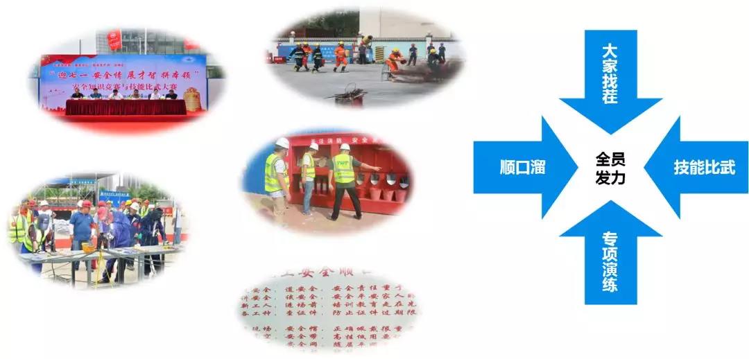 以“四保一促”为抓手(保安全,实现安全零事故;保质量,争创“工程海河杯”;保工期,确保通车任务;保文明施工,全部工地达到市级文明工地标准;促和谐,创建和谐稳定的内外施工氛围),成功应对施工风险,形成了“1234567”竞赛格局(瞄准“一个目标”、构建“两大体系”、建立“三个支撑机制”、健全“四个检查层级”、实行“五种安全奖惩方式”、创新“六个信息化管理平台”的安全管理体系,深入开展了“七个安全管理系列活动”)。