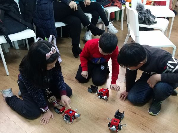 当孩子们拿着自己亲手制作的机器人进行试车时,纷纷开心的叫家长帮忙拍照,他们表示非常喜欢这类课程,希望今后还有机会再来制作高一级的机器人。