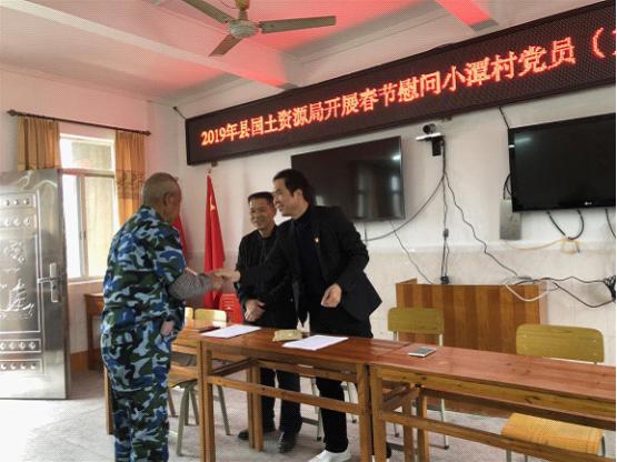 在传统新春佳节来临之际,1月29日上午,为扎实推进新时期精准扶贫工作,县国土资源局心系对口帮扶的石角镇小潭村,领导班子成员带队深入小潭村贫困户和小潭村村委送去了春节慰问金,希望他们能度过一个愉快而温馨的春节。