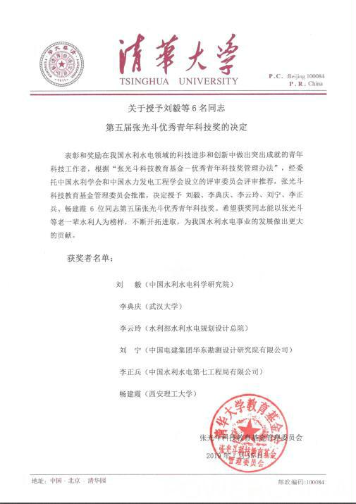 据了解,张光斗优秀青年科技奖旨在表彰和奖励在我国水利水电领域的科技进步和创新中做出突出成就的青年科技工作者,获第五届张光斗优秀青年科技奖人数在全国范围内仅有6人。