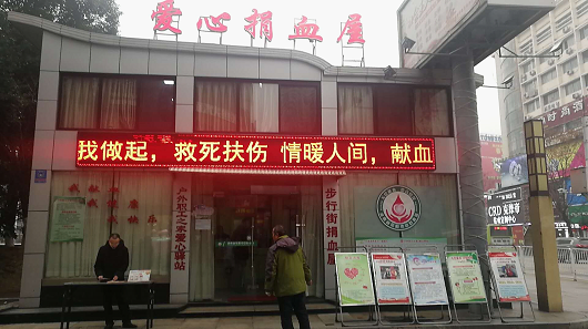 2月7日新年初三,市区步行街爱心捐血屋开始工作
