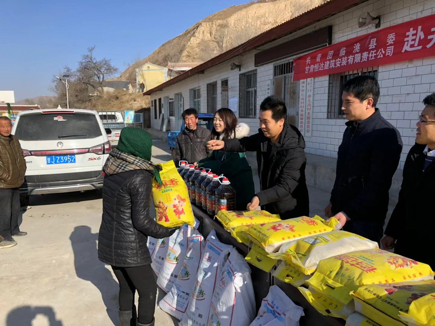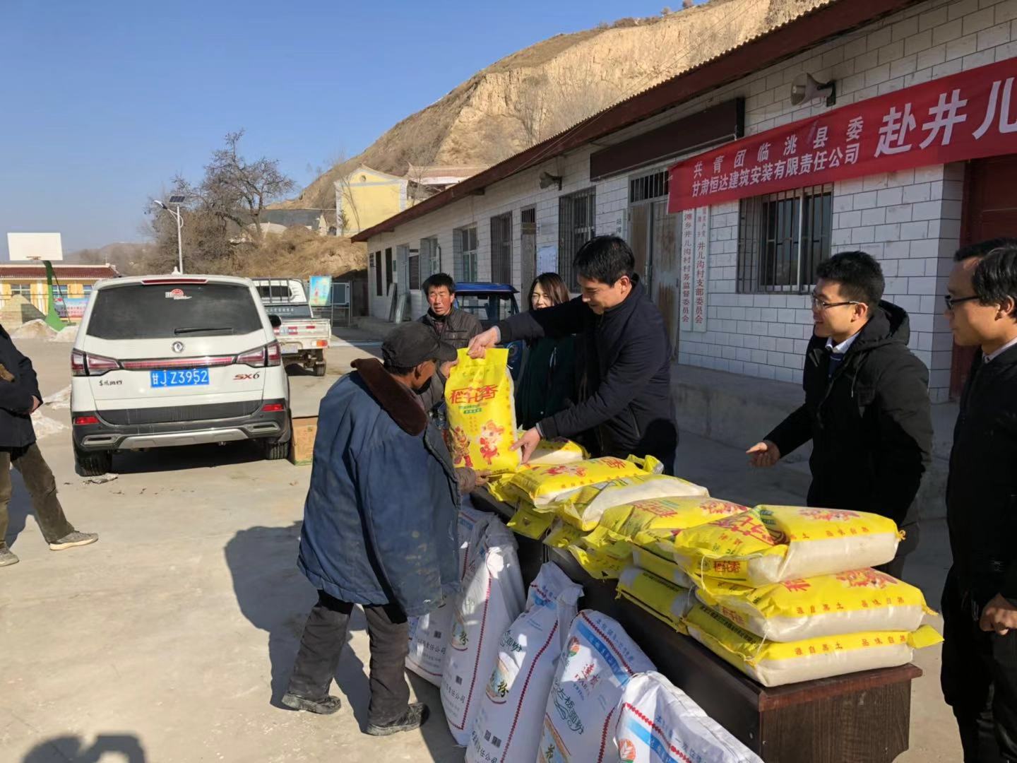 共青团临洮县委书记尹文涛,副书记庞雨琰、罗斌,甘肃恒达建筑安装有限公司项目经理冯义强一行前往站滩乡井儿沟村,为联系的23户困难群众送去了价值3000元的大米、面粉、清油、茶叶等元旦慰问品,为他们带去了党和政府的关怀和温暖。