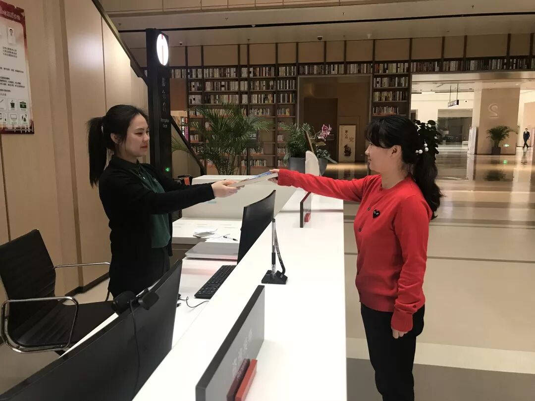 在中新天津生态城行政服务大厅里,工作人员们整齐就位,用微笑迎接新年第一批办理业务的人们。