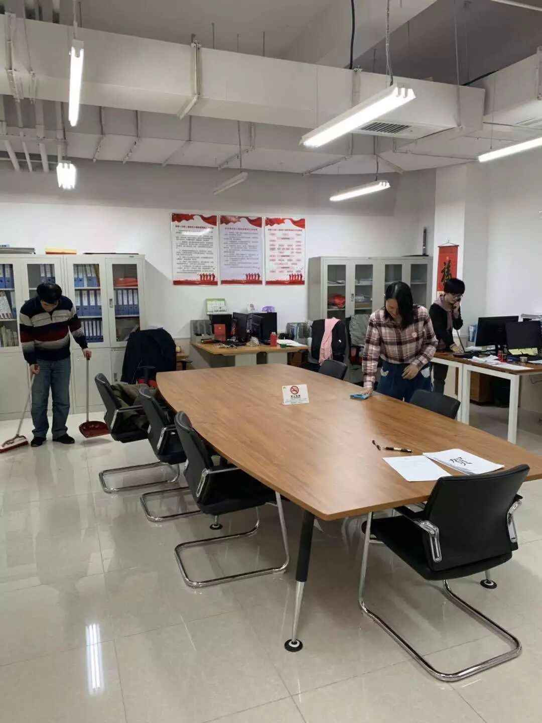水岸社区居委会的工作人员们开工第一件事是大扫除,窗明几净的办公室正在恭候居民们的到来。