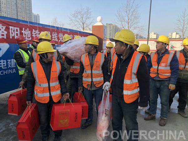 为保证工程节点目标的顺利实现,洛阳地铁2号线项目部的员工们放弃了回家团聚的幸福时光,选择了坚守在工作岗位的光荣使命。为了营造温馨的环境,和增加节日的气氛,项目部党组织采购了水果、猪肉等年货,由项目党员送到了施工人员的手中,连同新春祝福带到了施工现场,温暖着每个奋战在一线的施工人员,让他们感受到浓浓的中国年味和洛阳地铁2号线项目部这个大家庭团结奋进的氛围,在工作上信心倍增、干劲十足。