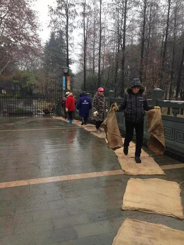 随着春节期间雨雪天气的到来,园林部门积极做好绿化保洁和融雪防冻工作。2月4日至11日区绿化队和公园管理处,共出动30台车辆,500余人次,清理绿化带垃圾枯死枝等共计 40余吨。同时各公园加大巡查力度,主要干道铺设草垫1000余米,安插警示牌100余块,临水区域拉好警示绳5000余米,及时用竹篙清理植被上的冰凌。