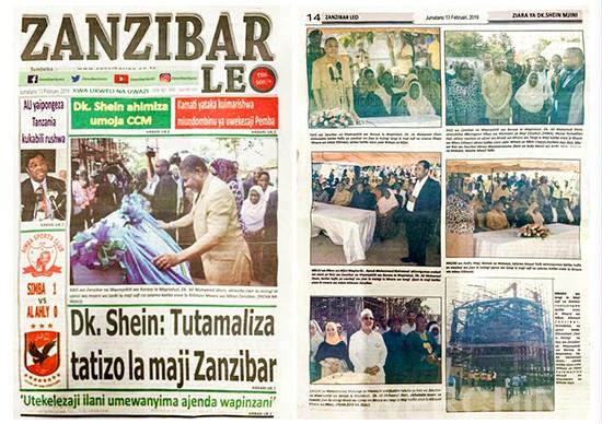 2月13日,坦桑尼亚《桑给巴尔报》头版报道了总统谢因为公司桑给巴尔供水工程项目揭幕的新闻,并以“总统谢因:我们将解决桑给巴尔岛供水问题”为题,高度评价了市政公司承建的桑给巴尔供水工程项目。