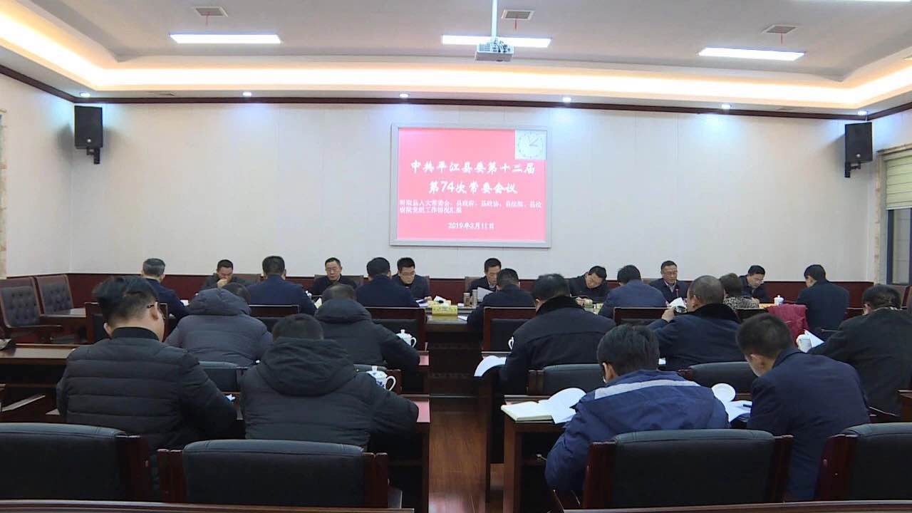 2月11日,县委常委会召开会议,听取县人大常委会、县政府、县政协、县法院、县检察院五个党组工作情况汇报,听取脱贫攻坚工作情况汇报,审议《全县党政负责干部会议暨加快工业发展、深化农村人居环境整治动员大会工作方案》和《2018年度绿富双赢新平江建设综合绩效考核结果》,县委书记汪涛主持会议。