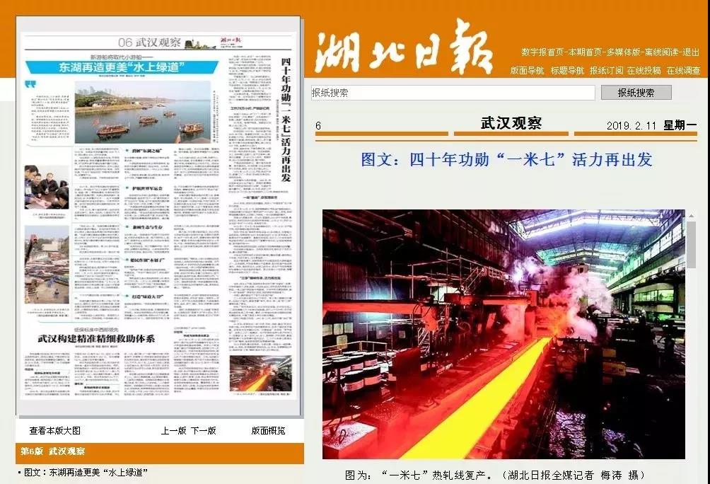 武钢“一米七”复产!《湖北日报》重磅推出功勋产线专稿