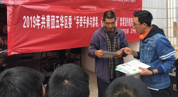 2019年春节期间,团区委结合“三下乡”活动,开展“手牵手参与禁毒,心贴心珍爱生命”主题宣传教育活动,在西翥街道针对青年、青少年、群众进行禁毒宣传教育,活动现场,对居民进行“心贴心,一对一”禁毒解释宣传教育,对青年、青少年进行“手牵手,共辨毒”的毒品分类图片展示认识等,还发放《云南省禁毒条例》宣传册、《云南省举报毒品违法犯罪奖励暂行办法》宣传单1000余份,新型毒品宣传单2000余份。