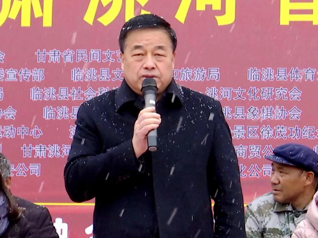 蒋景林宣布第八届甘肃洮河武术大赛开幕。