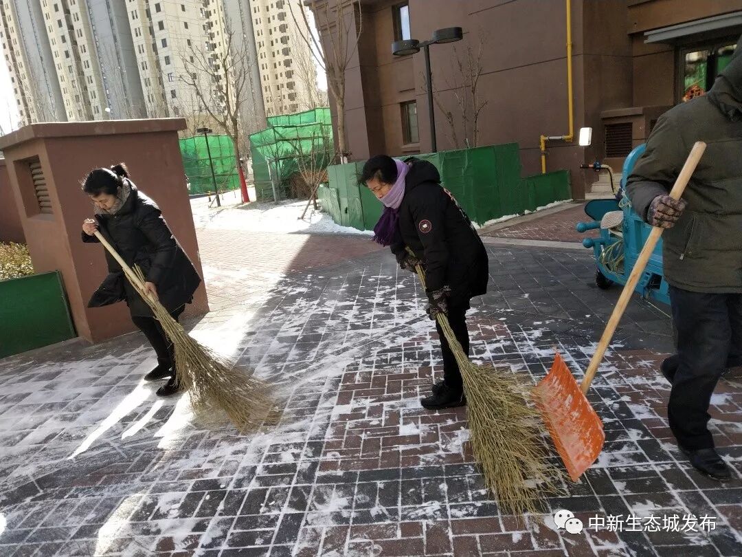 生态城各社区也及时组织开展清雪工作,社区居委会工作人员、物业人员和志愿者积极加入扫雪、清雪队伍,为社区居民营造安全、整洁的居住环境。