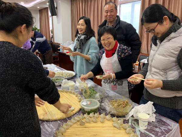 一开始,大家分工合作,拌馅的拌馅、和面的和面、擀皮的擀皮;紧接着,每组都撸起袖子、各展所长,老手带新手,其乐融融,场面十分温馨。与其说是比赛,倒不如说是一场妙趣横生的手艺展示。比赛在阵阵欢声笑语中圆满结束,每个人都包出了极具各自地方特色的汤圆和饺子。大家吃着自己包的汤圆和饺子,愉快地度过了一个难忘的元宵节。