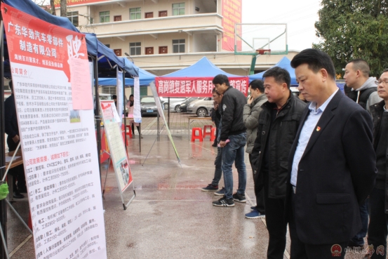 朱小松副县长莅临高岗镇招聘会现场指导工作,了解现场企业展位的用工岗位、工资待遇、务工保障等招聘信息,并强调要加大招聘信息宣传力度,促进人力资源供求双方的有效对接,帮助更多富余劳动力实现就业,推进民生工程,助力脱贫攻坚,帮助实现一人就业、全家脱贫的目标。