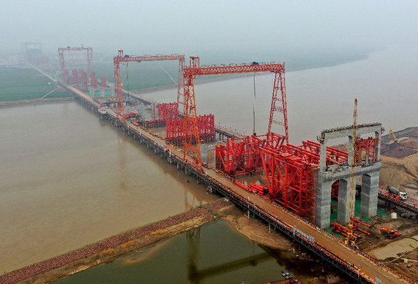 郑济高铁郑州黄河特大桥首件连续钢桁梁顺利架设
