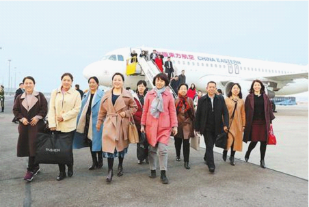 3月2日,出席十三届全国人大二次会议的在甘全国人大代表抵达北京。(记者高樯)
