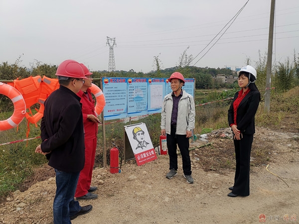 在现场,西气东输相关负责人详细汇报了隐患点整治情况:该隐患点位于潖江蓄滞洪区,汛期水流较大,管道经河水不断冲刷造成浅埋、裸露。目前该隐患点整治工程进展顺利,已完成30米河道截留,各项工程紧张进行中。