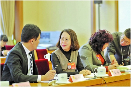 新疆日报讯(记者崔志坚摄影报道)3月9日,出席十三届全国人大二次会议的新疆代表团举行分组会议,审议全国人民代表大会常务委员会工作报告。会议间隙,全国人大代表张雁(左二)和其他代表交流。