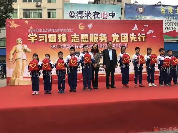 活动现场,县委书记董和平,县委常委、宣传部部长黄丽还为我县困难家庭的孩子送上装有背包、帽子、围巾、手套等十件物品的温暖包,鼓励孩子们做一个有益于社会的人。最后,董书记隆重宣布2019年佛冈县党员团员学雷锋志愿服务月正式启动,县委书记董和平,县委常委、宣传部部长黄丽,文明办主任吴春来,团县委书记欧军,县住建局局长欧阳炽荣共同触发启动球。