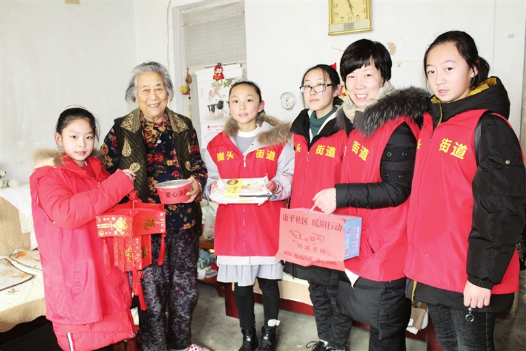 崖头街道康平社区志愿者将爱心汤圆送到社区老人家中,为其带去欢乐。
