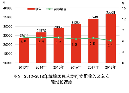 年末全省常住人口[13]6898.8万人。其中,城镇人口3864.7万人,城镇化率56.02%,比上年末提高1.4个百分点。全年出生人口83.9万人,出生率12.19‰;死亡人口48.7万人,死亡率7.08‰;人口自然增长率5.11‰。0—15岁(含不满16周岁)人口占常住人口的比重为20.78%,比上年末提高1.04个百分点;16—59岁(含不满60周岁)人口比重为60.73%,下降1.37个百分点;60岁及以上人口比重为18.49%,提高0.33个百分点。表10 2018年末常住人口数及构成