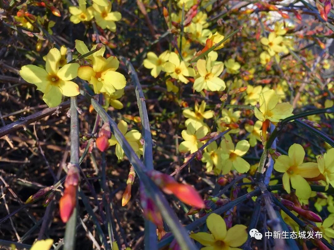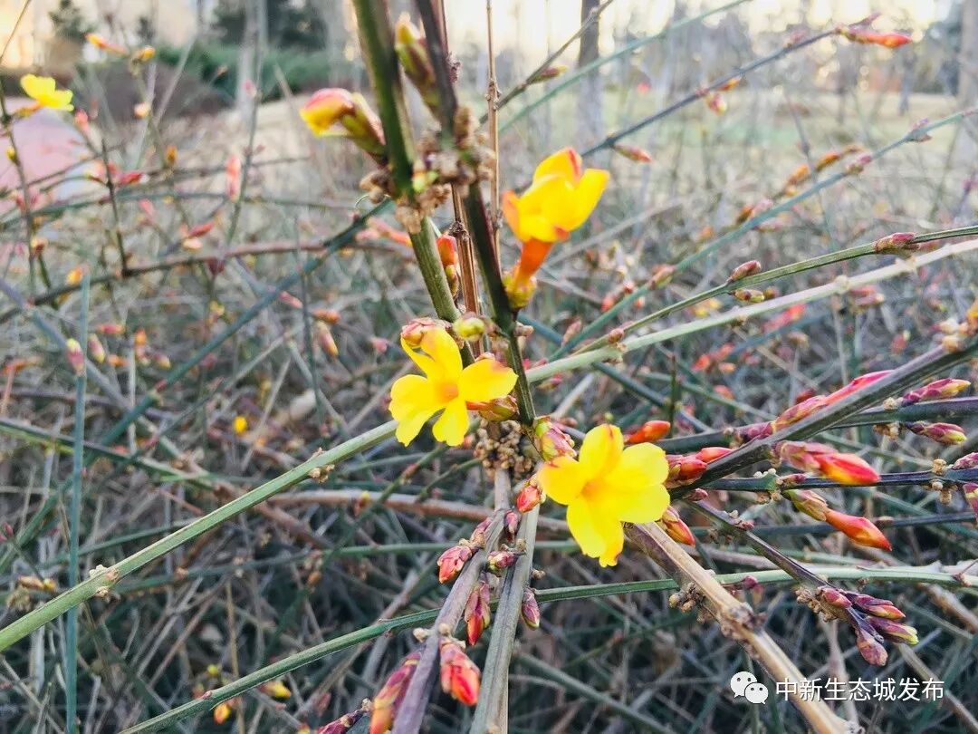在迎春花以后,不同花种轮番进入花期,生态城的色彩将越来越丰富。