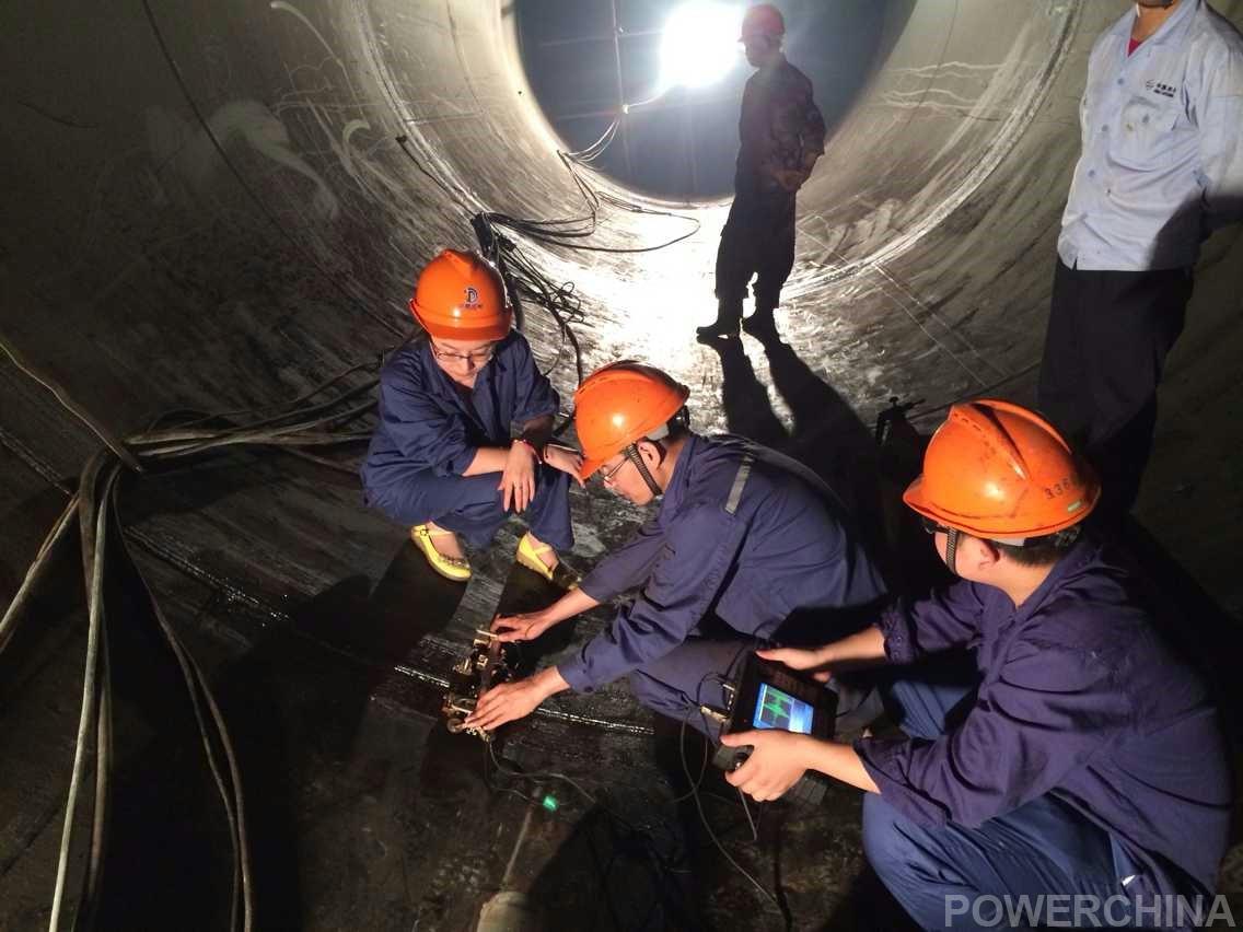 江西电建于2012年4月承接洪屏蓄水储能电站项目的金属检测任务,该项目也是其首次参与水电领域的金属检验工作。电站主体工程主要金属结构压力钢管钢板9667吨,焊缝约计2万米,压力钢管安装焊缝的质量在电站工程中至关重要。因此对洪屏抽水蓄能电站工程引水压力钢管安装焊缝进行无损检测,确保焊缝质量能达到设计要求尤为重要。