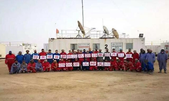 图为东方物探阿曼勘探现场-创2800安全工时世界纪录留念