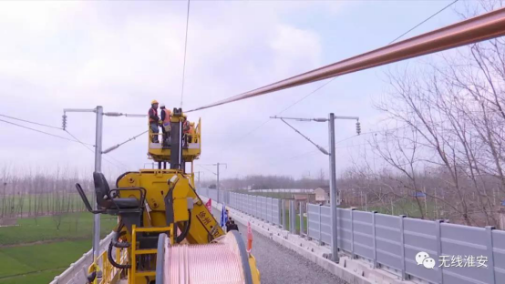 连淮扬镇铁路首条接触网导线架设成功