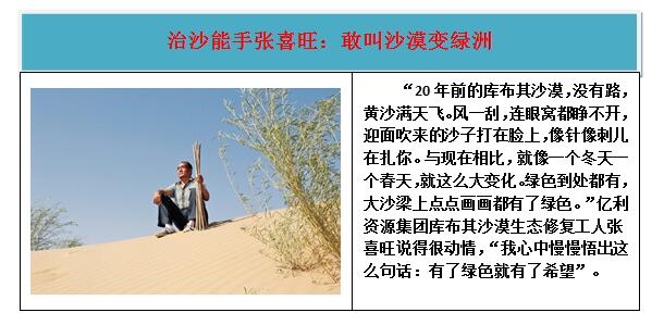 一代又一代、一批又一批治沙英雄是新时代内蒙古自治区荒漠治理、生态改善、农业开发、农村发展的强大力量,他们用智慧和汗水在荒漠中打造出绿水青山。