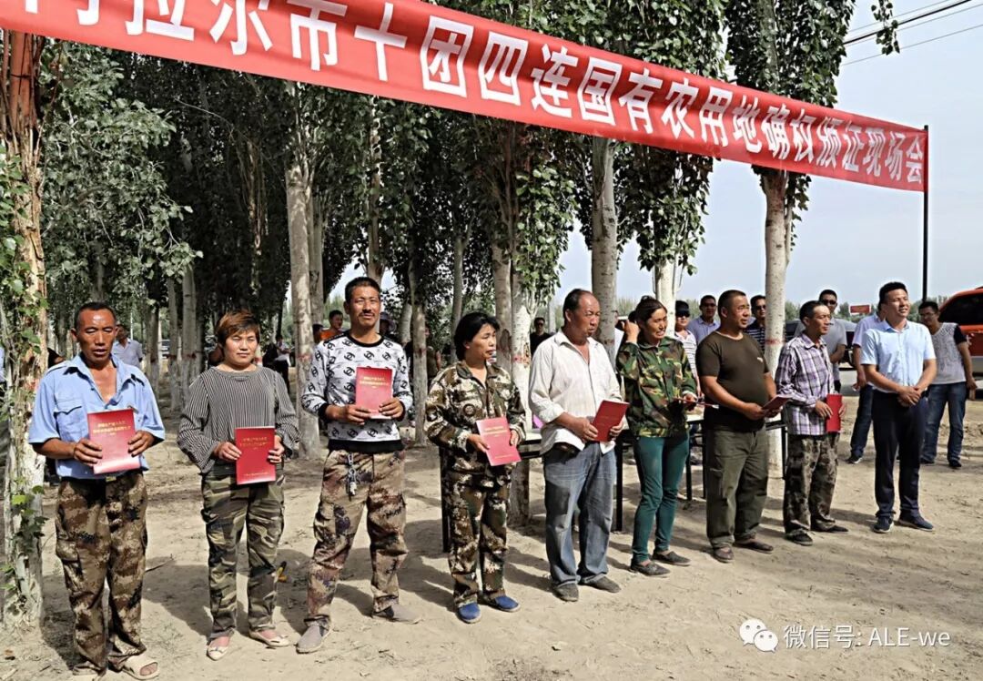 2018年6月27日,是一个令人难忘的日子。这一天,师市在十团四连召开国有农用地承包经营权确权登记颁证现场会,在与会人员的见证下,对四连一块国有农用地现场打桩、定界。十团四连“两委”成员详细介绍了国有农用地确权登记颁证工作的具体流程,就推进连队国有农用地确权颁证工作顺利开展进行现场指导。