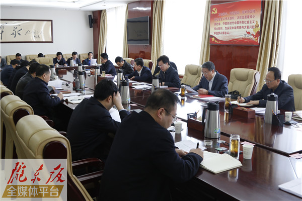 3月14日,市委理论中心组举行2019年第三次学习会议,学习研讨《习近平扶贫论述摘编》《习近平关于社会主义生态文明建设论述摘编》和习近平总书记参加十三届全国人大二次会议甘肃代表团审议时的重要讲话精神。