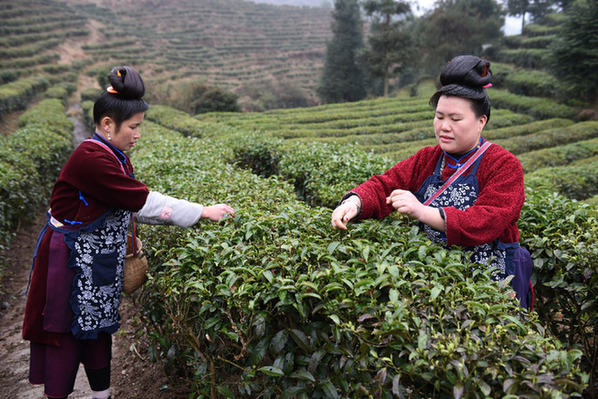 近日,随着气温回升,贵州省黔东南苗族侗族自治州丹寨县“扶贫茶园”的春茶陆续进入采摘期。