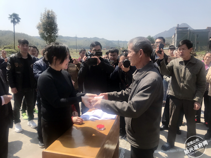 3月12日上午,在始兴县隘子冷洞村举行的广东省首个拆旧复垦资金分配发放仪式上,62户村民现场豪分896万元拆旧复垦交易收益资金。
