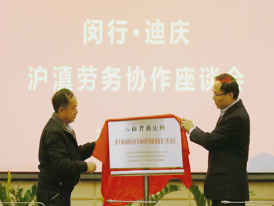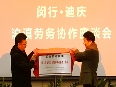 在召开的两地沪滇劳务协作座谈会上,曹扶生副区长对迪庆州代表团的到来表示热烈的欢迎,重点就做好下一步就业扶贫工作从一如继往深化两地建立的机制和渠道,加大产业扶贫力度,加大转移就业力度等三个方面提出要求。和建国局长对闵行区给予迪庆州的帮助支持表示感谢,指出下一步脱贫攻坚中希待继续得到闵行区大力支持。座谈会上,还举行了迪庆州驻上海市劳动力转移就业服务工作站和驻上海市闵行区劳动力转移就业服务工作分站揭牌仪式,香格里拉市人社局和闵行区人社局分别介绍了沪滇劳务协作就业扶贫工作开展情况。