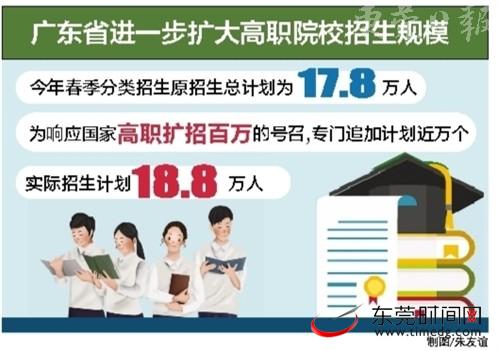 东莞时间网3月20日讯 2019年是广东省普通高校春季分类考试招生实施的第一年,且将成为广东省高职院校招生录取的主要渠道。今年我省春季分类招生统一招生录取时间已出炉,且在原计划招生名额的基础上再增近万名。