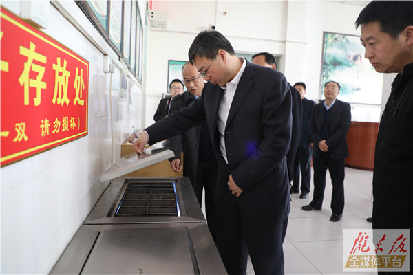 王胜带领市市场监管局、市教育局和西峰区政府负责同志,先后前往西峰区星星幼儿园、新建小学、肖金中学和庆阳一中、庆阳职业技术学院,就学生食堂环境卫生、食品卫生、消防消毒等情况进行了现场检查。
