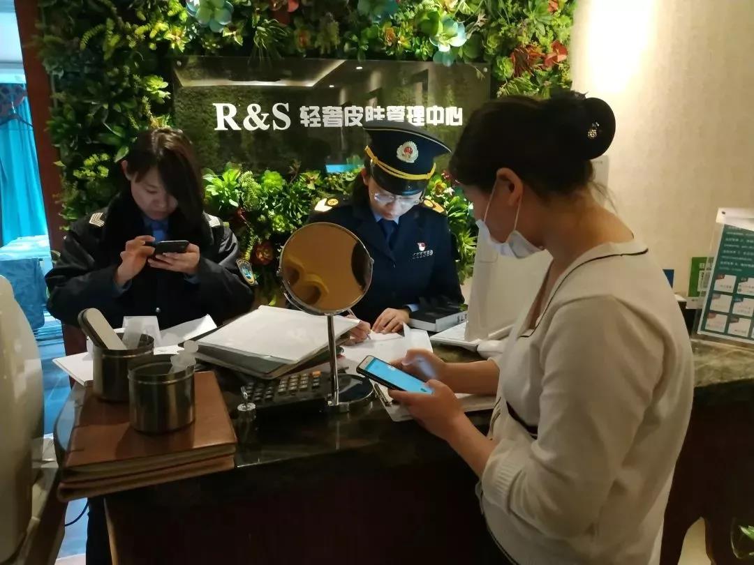 随后,执法人员前往首城国际B座704室R&S美容店现场,执法人员认真检查了商户证照、从业人员证件和经营台账等材料并在店内发现了注射针剂、药品、医用耗材等物品经查,该店并不具备行医资质。