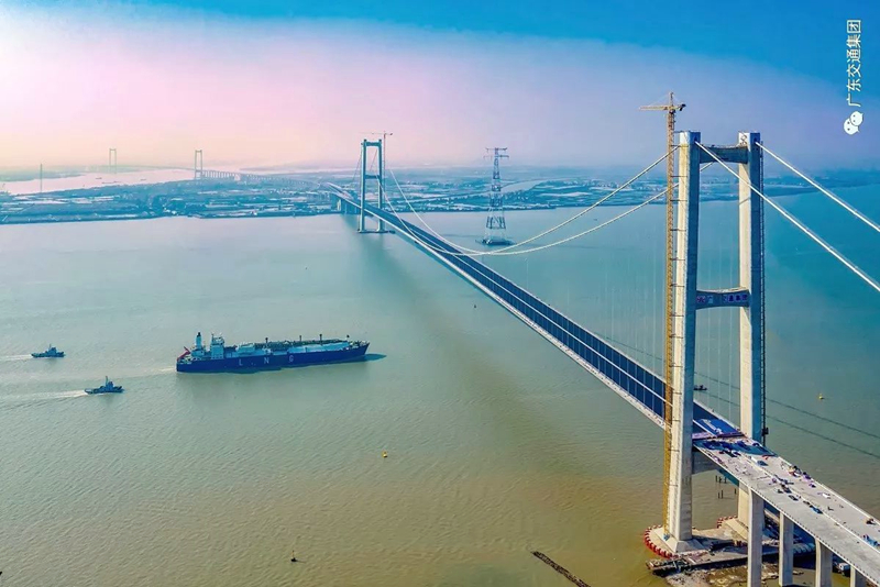 可能很多市民并不清楚,虎门二桥并不仅仅只有一座大桥,而是拥有两座跨江特大桥——坭州水道桥和大沙水道桥。这两座特大桥一个主跨1200米,一个主跨1688米,都比当年主跨888m、被誉为“世界第一跨”的虎门大桥向前跨越一大步,距世界第一的日本明石海峡大桥(1991m)只差303m。