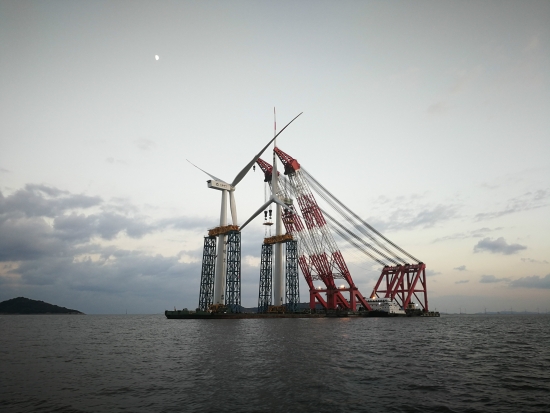 该项目位于浙江省舟山市六横岛东南侧海域,离岛约12km,水深在12~16m,总装机容量为252MW,布置63台4.0MW风电机组。项目从2016年12月18日首桩打桩成功到2019年3月18日完成全部风机吊装,历时整整27个月,华东院项目团队不畏困难,攻坚克难,充分考虑工程海域“厚淤泥、大涌浪、强台风”的特点,针对性地在“微观选址”、“地质勘察”、“海上升压站”、“风机基础”、“陆上集控中心”、“陆上计量站”、“三段线路”等方面开展70余项专题设计工作,获得创新性亮点18项,防台专项设计优化8项。基于本项目的科技成果,《深厚淤泥大涌浪海域风机基础设计及应用》荣获2018年度电力建设科学技术进步奖二等奖,《软弱土中海上风电桩基设计技术及应用》荣获2018年度电力工程科学技术进步二等奖。