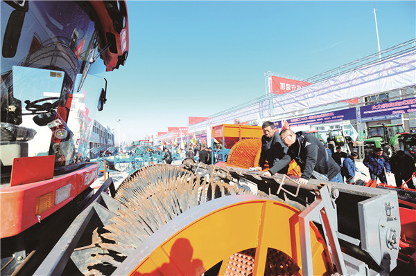 展区里,各式大中型拖拉机、联合收获机、飞防无人机、大型采棉机、玉米去雄机等农机产品琳琅满目,令人应接不暇。宽大的展场通道内,人头攒动,来参观的农户们寻找着自己感兴趣的产品,不时向企业的工作人员提出有关性能、价格、补贴政策方面的问题。