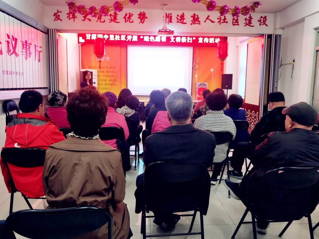 3月15日下午,甘露园中里社区开展以“绿色清明,文明祭扫”为主题的宣传活动。活动中,社区工作者通过现场讲解、发放宣传资料等方式向辖区居民发出倡议,倡导社区居民弃陋习破迷信,树文明祭祀新风尚,度过安宁祥和的清明节。
