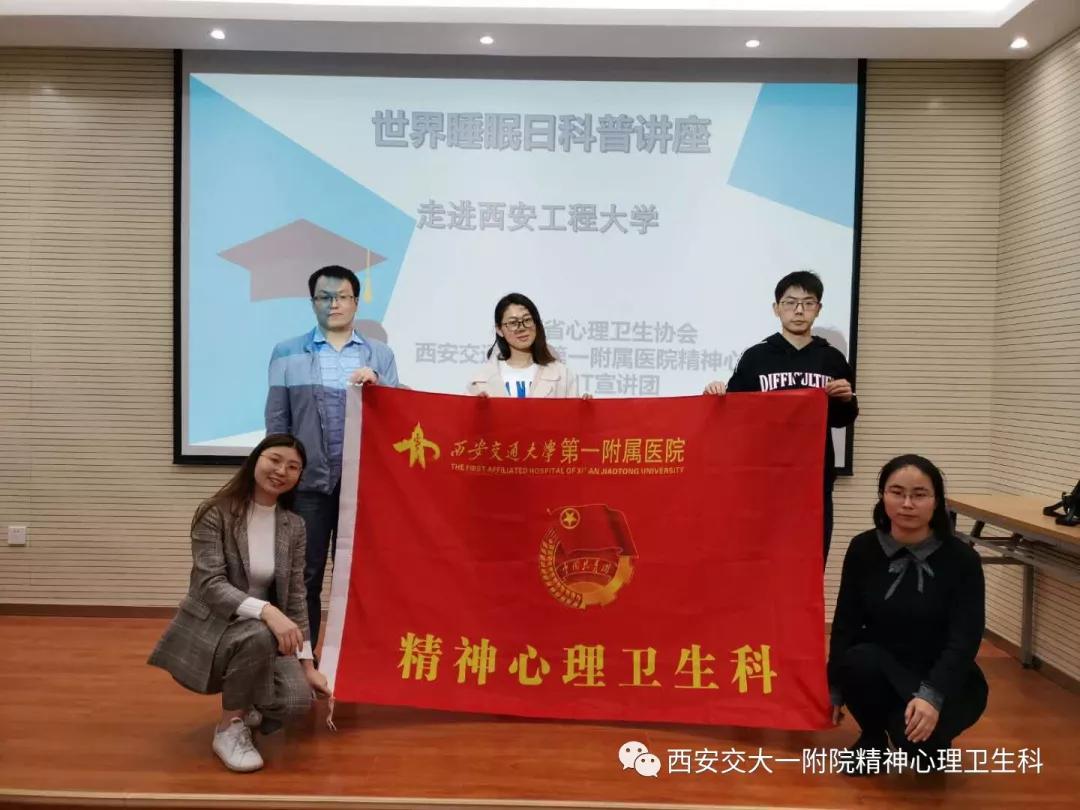 同时,为响应我院发起的“医校联合”系列活动,由焦翔医生带领我科5名医务人员组成的5-HT”宣讲团,代表交大一附院精神科团委,进西安工程大学为学生和教职工做了与“失眠”、“抑郁症”相关的系列宣讲,前来听课的学生和老师纷纷表示受益匪浅,对于此次宣讲活动走进校园活动的意义给予了充分肯定。
